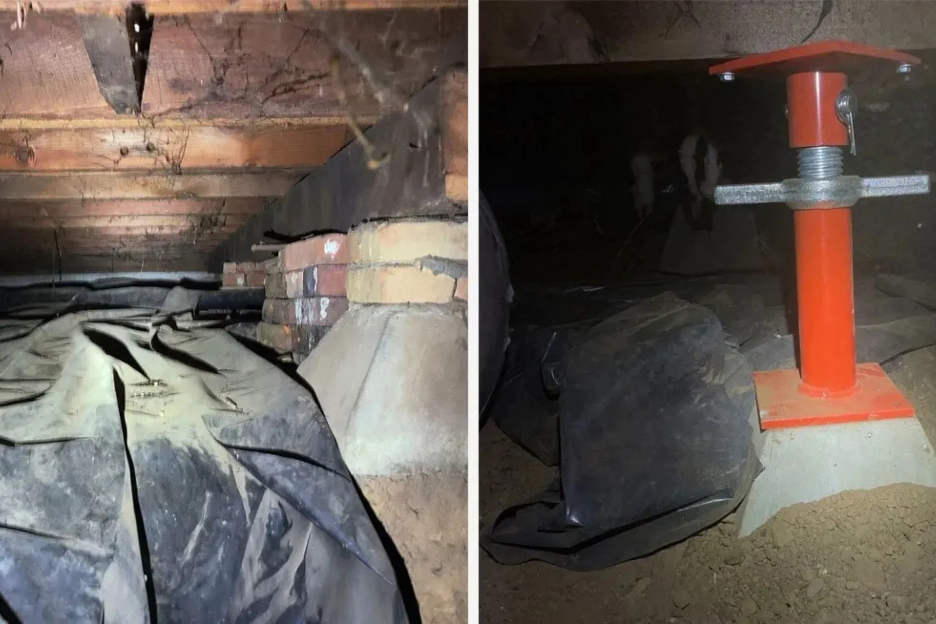 Failing crawlspace posts, beams, and supports